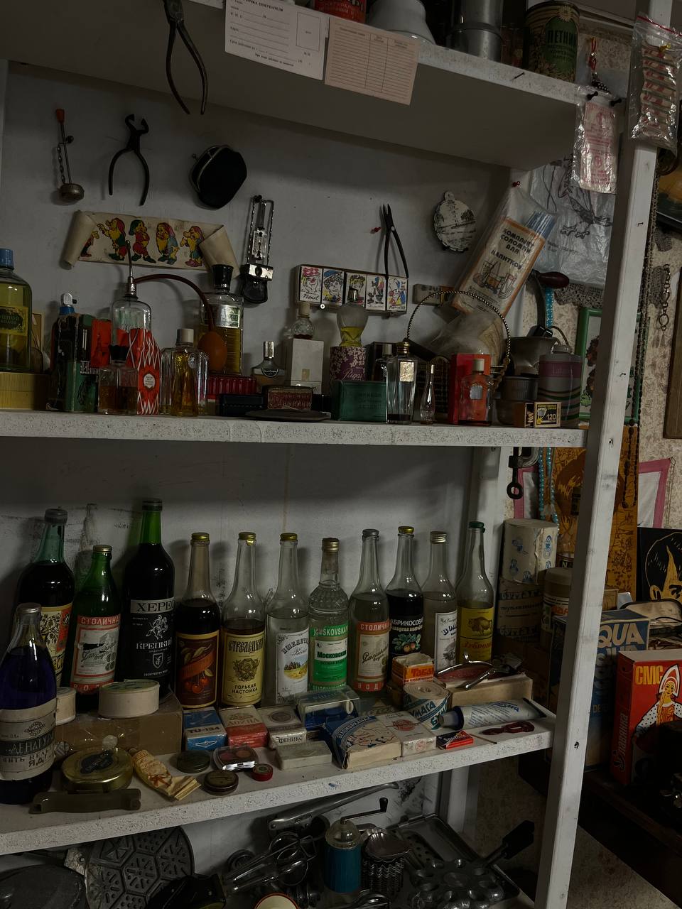 Обширная интерактивная коллекция расположилась в трёх залах. В «Коммунистическом» — вымпелы и знамёна передовиков производства, почётные грамоты, газеты, школьная форма и атрибуты пионерской организации. В зале «Советская игрушка» — как куклы и мишки, солдатики и неваляшки, так и наборы кукольной мебели, всевозможные головоломки и ёлочные украшения. А оказавшись в зале под названием «Плюшкинский», можно изучить многочисленные флаконы, в которых продавались советские духи, полистать один из номеров журнала «Крокодил» за 1966 год или даже послушать пластинку на радиоле. Есть здесь и раритетные экспонаты — «Настольный календарь колхозника» за 1938 год (его тоже можно аккуратно полистать) или, например, надувная вешалка (для командировок) — инновация начала 1980-х.